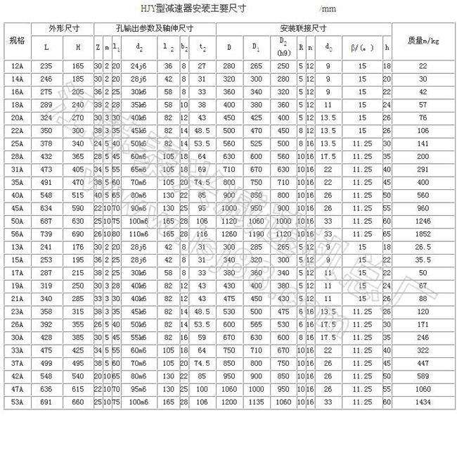 工作條件:輸入轉(zhuǎn)速28B型以下≤3000 r/min,40B型以下≤1800r/min,45B型以下≤1000r/min,Y型≤1500r/min;公稱轉(zhuǎn)矩2.107~588kN·m;傳遞功率0.25~2000kW;工作環(huán)境溫度為-40~45℃,低于0℃時,啟動前潤滑油應(yīng)預(yù)熱,高于45℃時應(yīng)采取降溫措施。