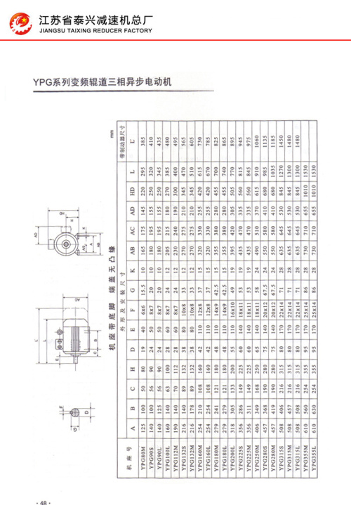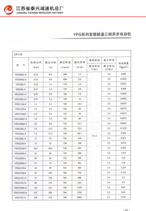 YPG系列變頻輥道三相異步電動機(jī)44-50